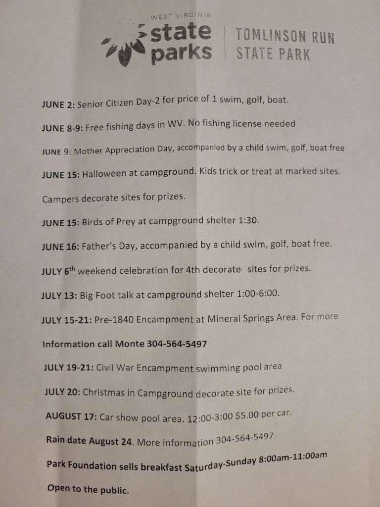 Tomlinson Run State Park offers many amenities;